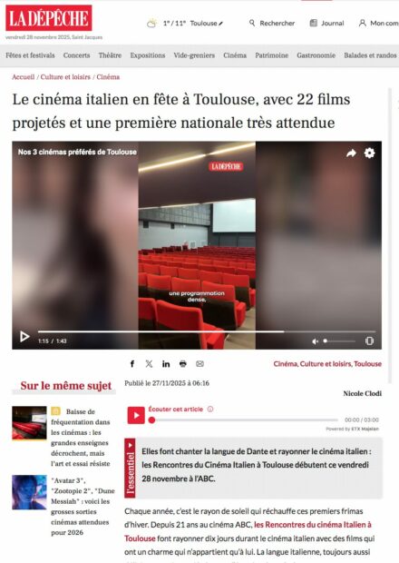 LA DEPECHE – Le cinéma italien en fête à Toulouse, avec 22 films projetés et une première nationale très attendue